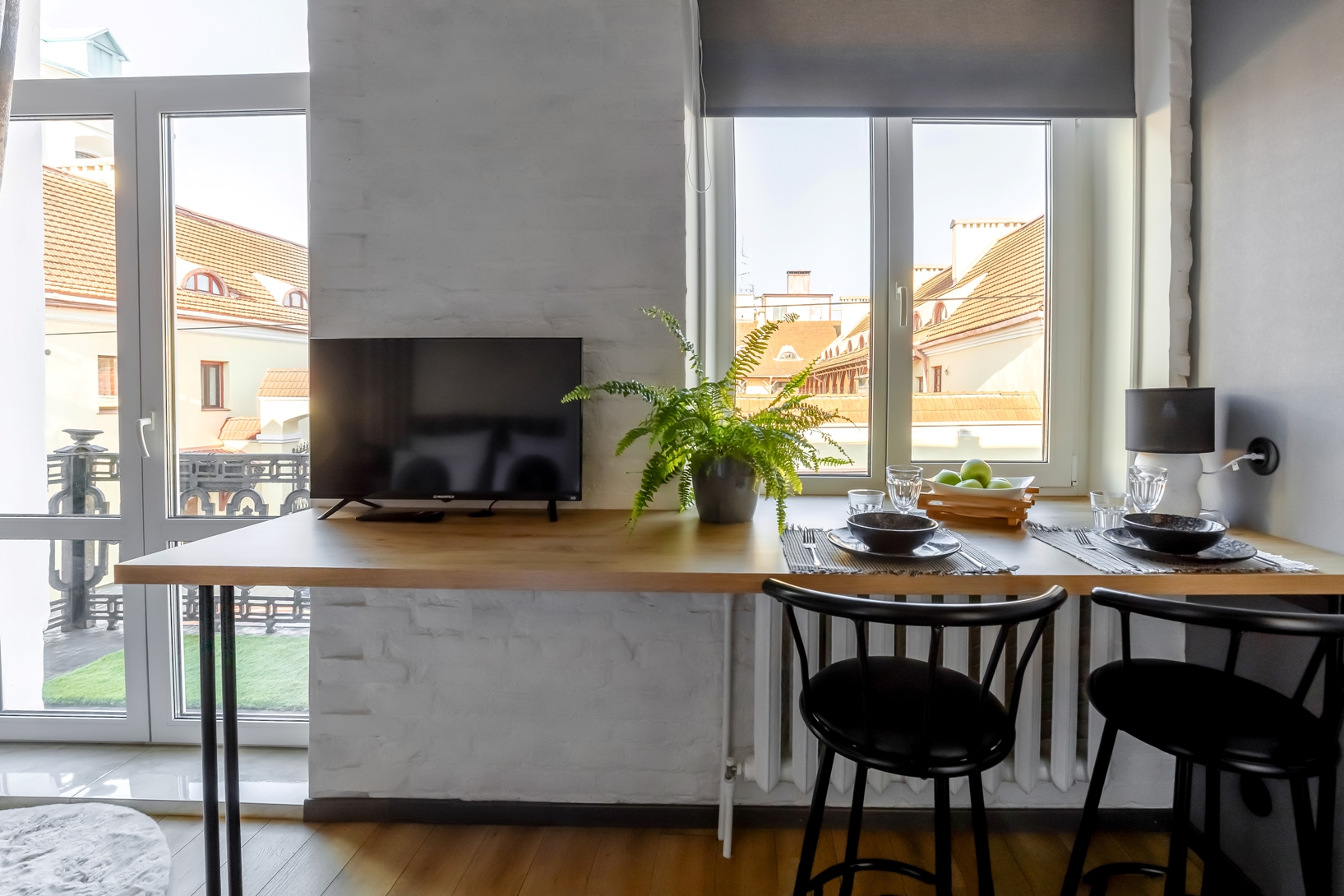 Ремонт сделан в 2022 году. Апартаменты укомплектованы всем необходимым. Кухня с полным комплектом техники и посуды позволит самостоятельно приготовить любимые блюда. Романтический вечер с шампанским можно провести на балкончике с видом на главную достопримечательность города. Шикарный вид из окна обеденной зоны позволяет насладиться прекрасными видами города во время трапезы.