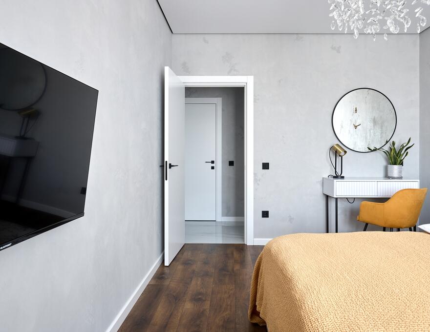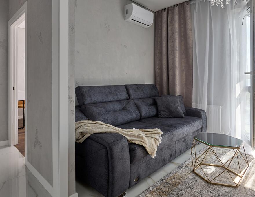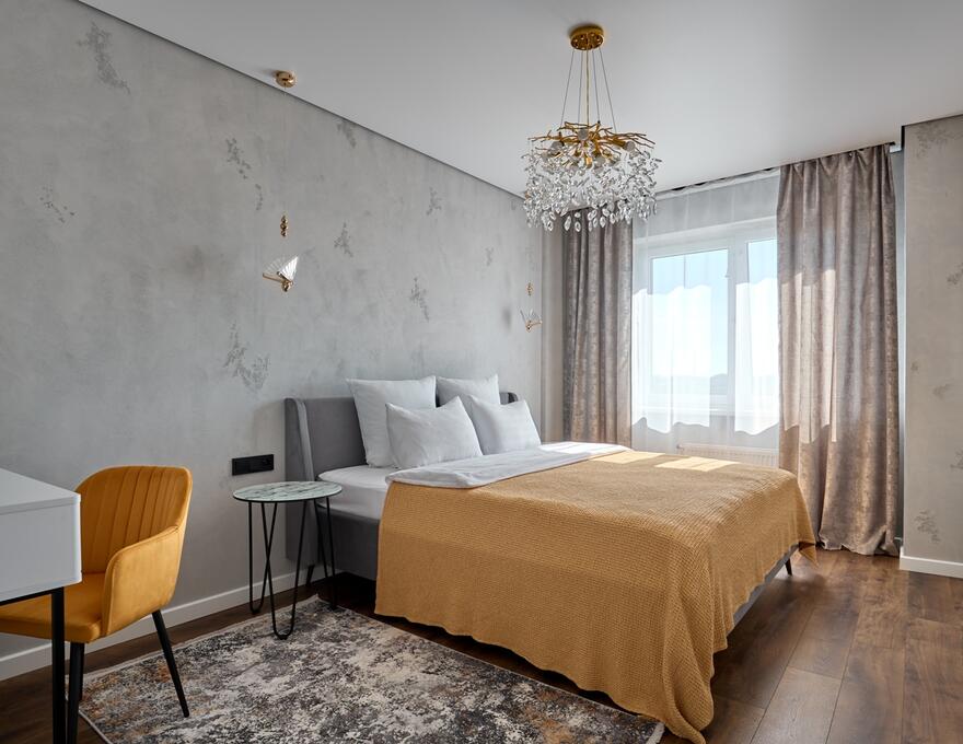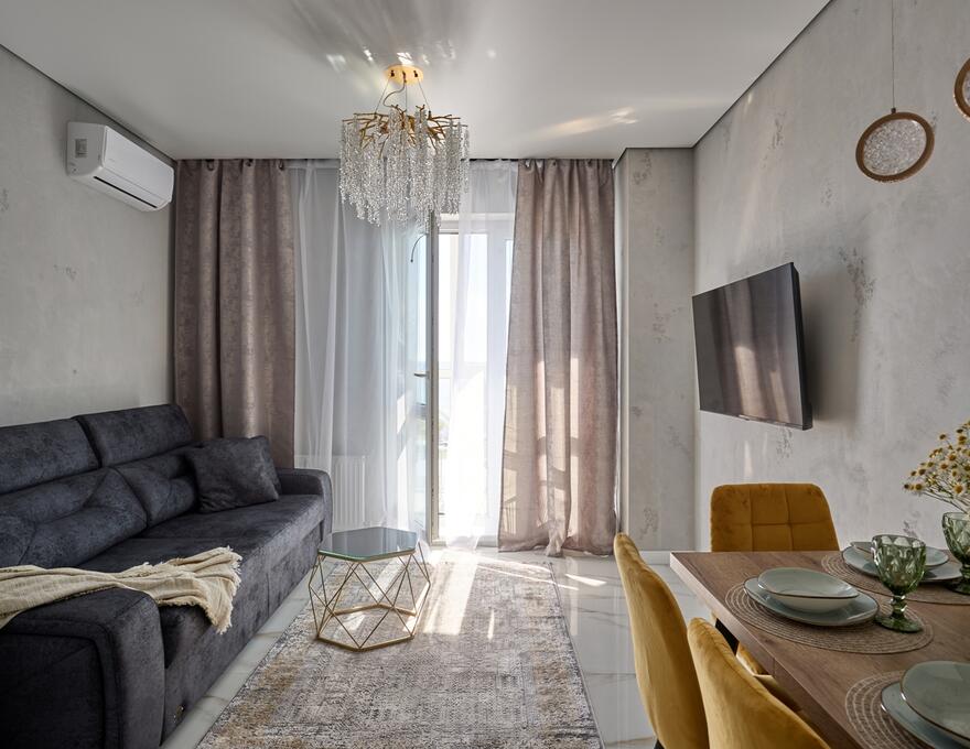 В квартире с дизайнерским ремонтом в светлых тонах есть все для комфортного проживания: большая кровать, раскладывающийся диван, просторная ванная комната. Среди удобств имеется кондиционер, ЖК-телевизор, стиральная машина и другая современная техника.