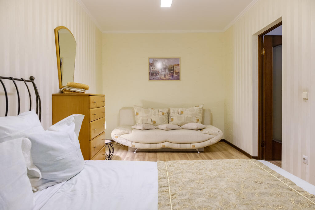 Comfortable modern apartment, new 14th house, 14th floor with a beautiful view from the window. Parking is available. TV with internet access. Comfortable sleeping places. Nearby Trinity (a large shopping and entertainment complex), other hypermarkets