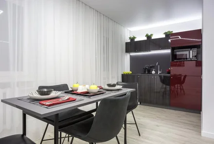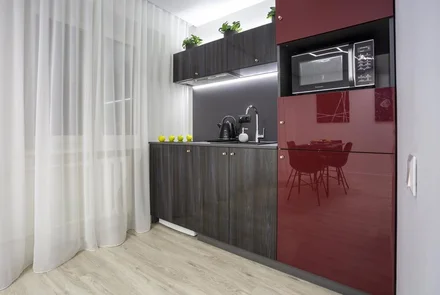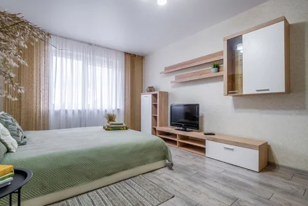 The apartment is equipped in such a way that your stay is as comfortable as possible: a large double bed and a pull-out sofa in the living room, a 43" TV, high-speed Wi-Fi.