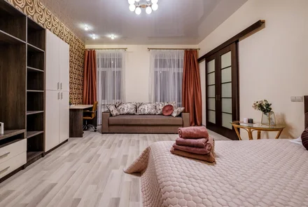 The apartments are ideal for couples, families with children, tourists, city visitors, business travelers, as well as for large groups of tourists if both are booked at the same time.