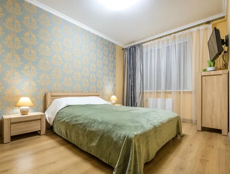 Spacious one-bedroom (two separate rooms) apartment in a modern new building, a 10-minute walk from the railway and bus stations, within walking distance from the central part of the city - the beginning of all tourist routes.