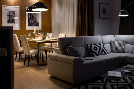 Квартира расположена на верхнем этаже в доме на высокой набережной реки Неман, в исторической части города. Из окон открывается потрясающая панорама на город.