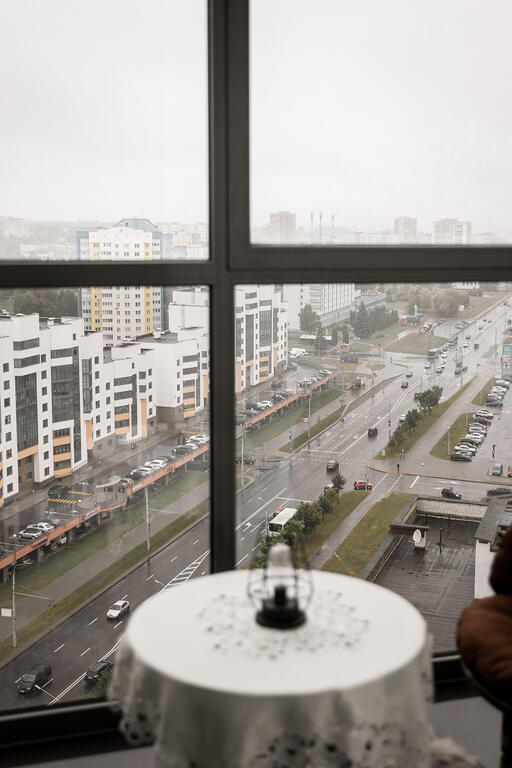 Studio apartment with a bird's-eye view of the city