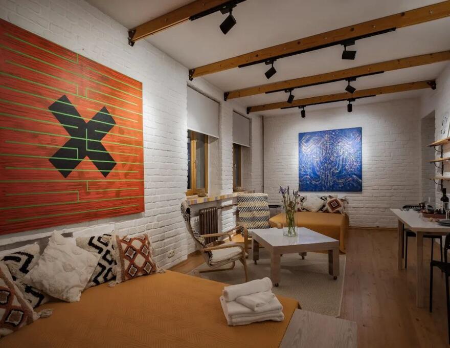 The apartment is located in the city center next to the main pedestrian street, a 5-minute walk from the car and train stations, 300 m from the city amusement park.