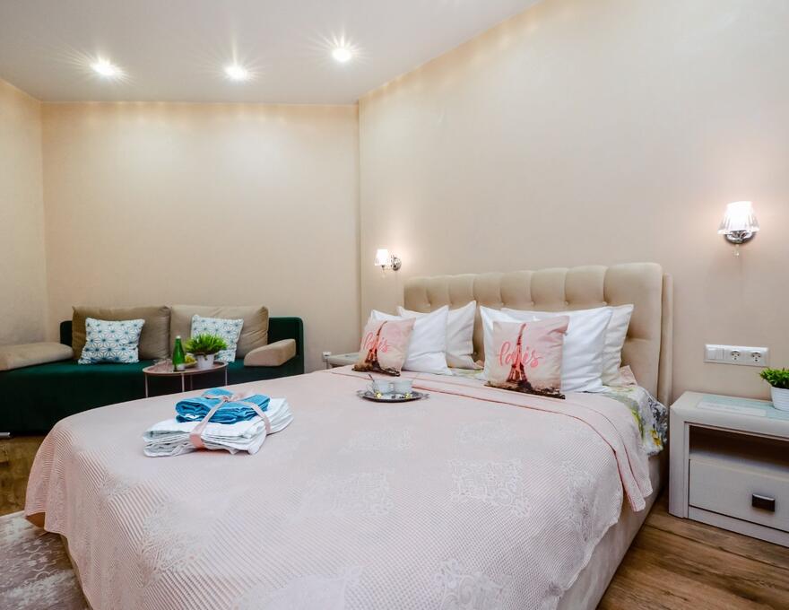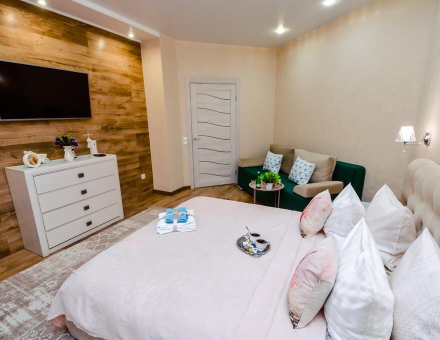 A cozy apartment for a good rest. The apartment has 4 beds. Within walking distance from the apartment is the city center, cafes, bowling alley, cinema, shops. The apartment has everything you need: tea, coffee, clean satin linens, a set of towels, as well as all modern household appliances. Not for noisy companies. Regular customers get a discount. Check-in is from 14.00 to 00.00, check-out is until 12.00. The price depends on the number of residents. It is advisable to call. All accounting documents, for business trips.